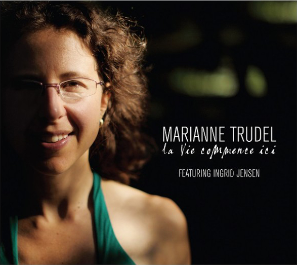 Three years ago, Montreal’s other mainstream jazz label Effendi Records released Trudel’s truly marvellous album Espoir et autres pouvoirs (2011). As revealed in interviews with Peter Hum and Alayne McGregor, the thirty-seven-year-old French Canadian composer began formal jazz education by writing for big band, and that earlier septet date sounds indebted to the large ensemble writing of acknowledged influence Kenny Wheeler—right down to the use of wordless vocals. La vie commence ici returns to the quintet format of her second record Sands of Time (self-released, 2007) but preserves the great trumpeter/flugelhornist’s influence, with the ensemble disproportionately large-sounding and a trumpet star still in the ranks. For Espoir et autres pouvoirs, Ms. Trudel enlisted Lina Allemano, one of Canada’s most adventurous trumpet wielders and bandleaders. Though a formidable soloist, Allemano acted largely as an integral part of a seven-piece band. (To see the septet in action, watch a promo video and performance footage on YouTube.) This time Trudel has built more improvisational space into her pieces, prompting elaborate solo excursions from another maple leaf virtuoso. Nanaimo-born Ingrid Jensen herself cites Wheeler as an inspiration and contributes trumpet to her sister Christine’s Montreal-based Jazz Orchestra. Marianne Trudel’s compositions share a pervasive joie de vivre with Christine Jensen’s, likewise issued on splendid Effendi and Justin Time discs.